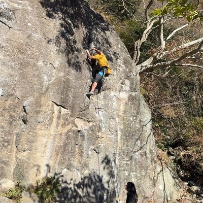 圧倒される強傾斜壁をポジティブなホールドを繋いでダイナ...