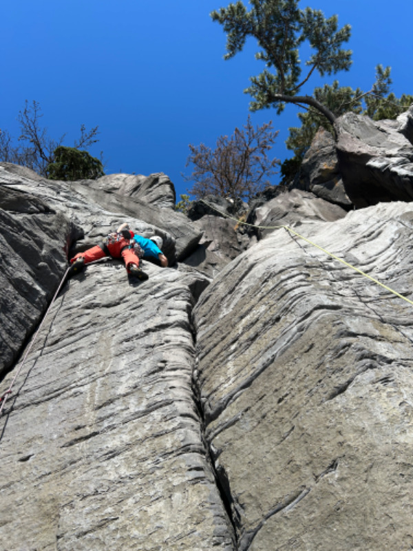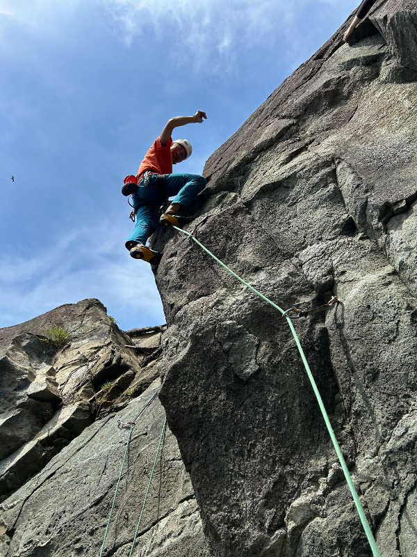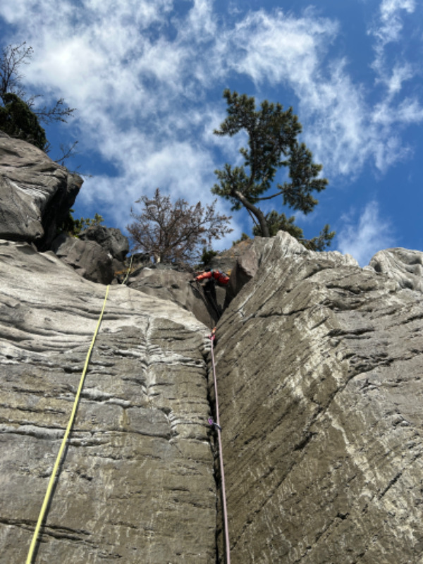 リードアンドフォローで登るルート。出だしのクラックは快適。 上部はワイドと思いきやフェイス登りで登れます。 終了点にある...