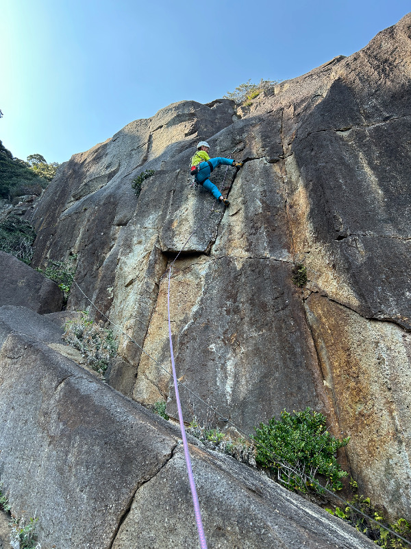 核心はボルト2ピン目から3ピン目付近。バランシーで右から?左から?越えるかはクライマー次第。意外と楽しいルートです。 終了...