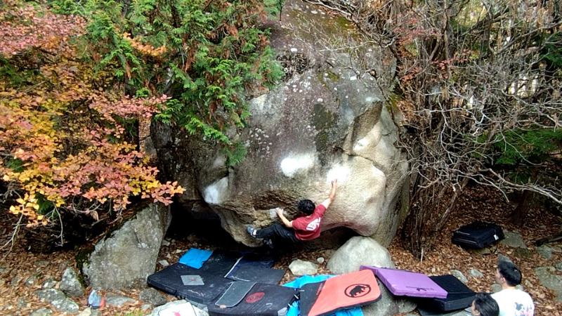 岩の前で色々な人の登りを見ましたが、人によって結構ムーブが違う面白いルートでした。 めちゃくちゃムズかしいムーブは無いので...