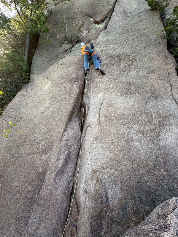 三倉遠征で初めて登ったルート。 中の岳岩稜の1P目に。 濡れていて怖かった。三倉のクラックは溝と聞いていたが、一瞬で...