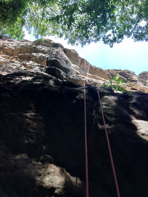 城山南壁の人気マルチ。 手頃なグレードで、マルチに慣れてきたクライマーに登られている。 ハング...