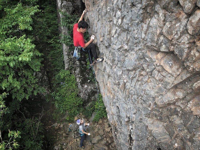 最終ピンがなくなった。登れなくはないが少し長めに落ちるのでビレイは注意。意外にパワー系。終了点から...