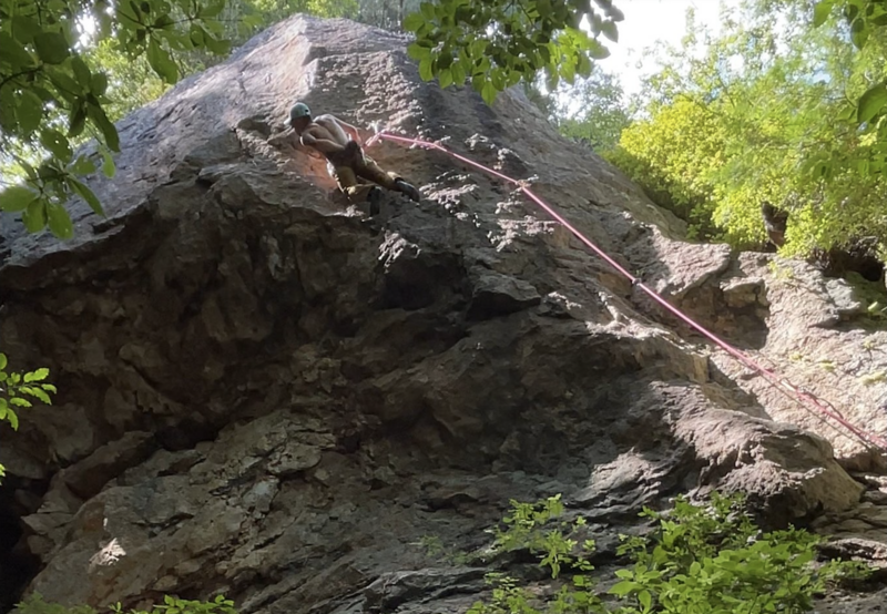 短く傾斜しホールド明瞭だが、ムーブの強度は高め。フットホールドは豊富。ジムみたいに楽しめる。