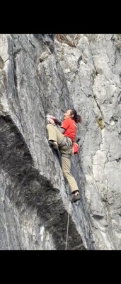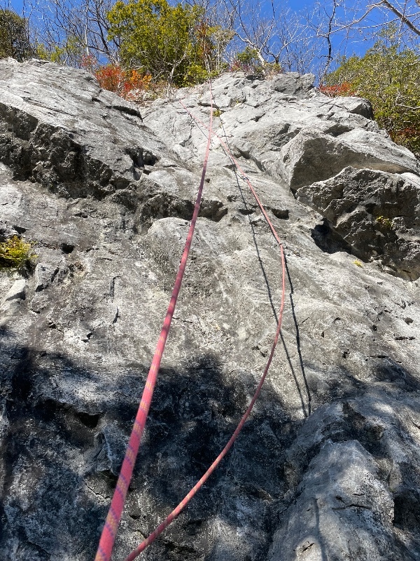 出だしからドッ被りのルート。でもホールドの持ち感は良い。でも2ピン目からはM8ボルトで鉄の腐食して...