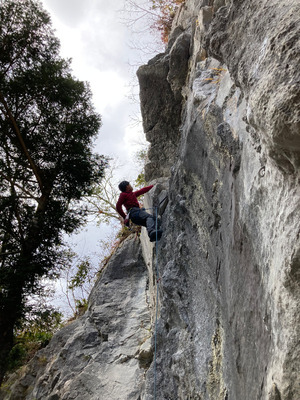 上部のハング越えが核心。ホールドが分からないとオンサイトは厳しいかも。