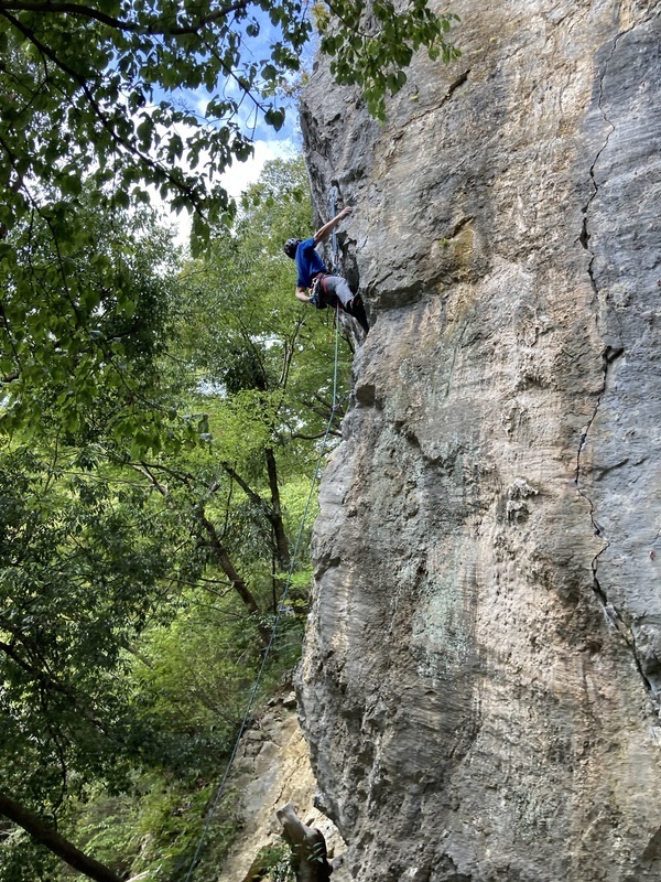 出だしの強傾斜は見た目は派手ながら登りやすい。ごちゃごちゃしている上部が迷いやすい。