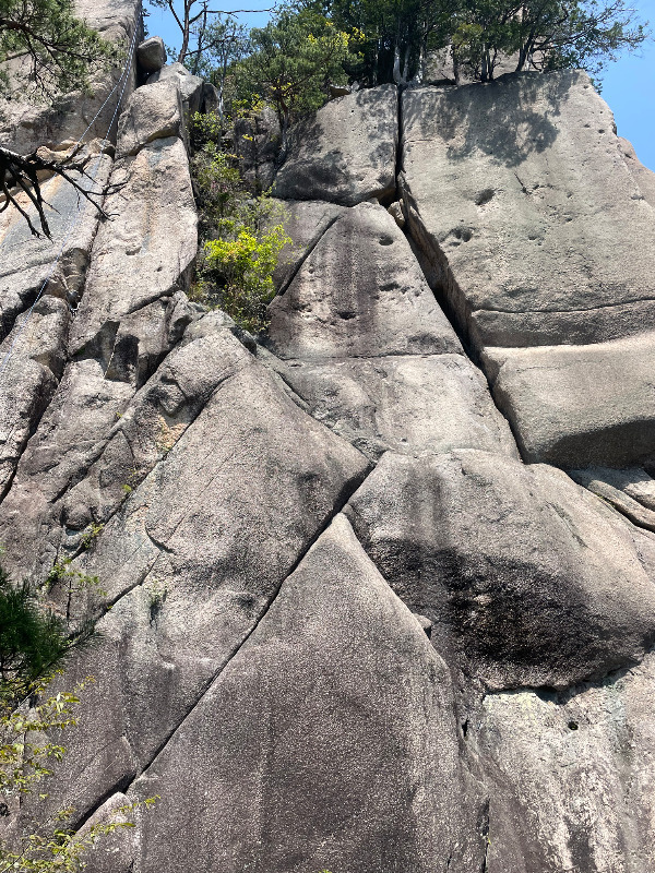 読みは「うしまつ」。 NP+Bのスラブ/クラック。 左のクラックから右のカンテに移るとこがバラ...