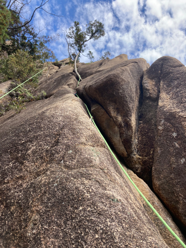 三倉遠征で初めて登ったルート。 中の岳岩稜の1P目に。 濡れていて怖かった。三倉のクラック...
