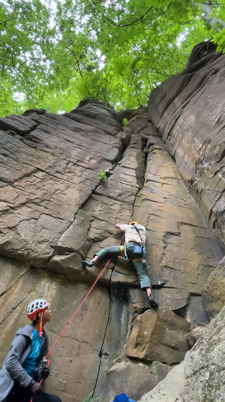 下部の数メートルが核心。それを上がって終えばガバばかり。上部はハンドサイズに見えるがハンドサイズの...