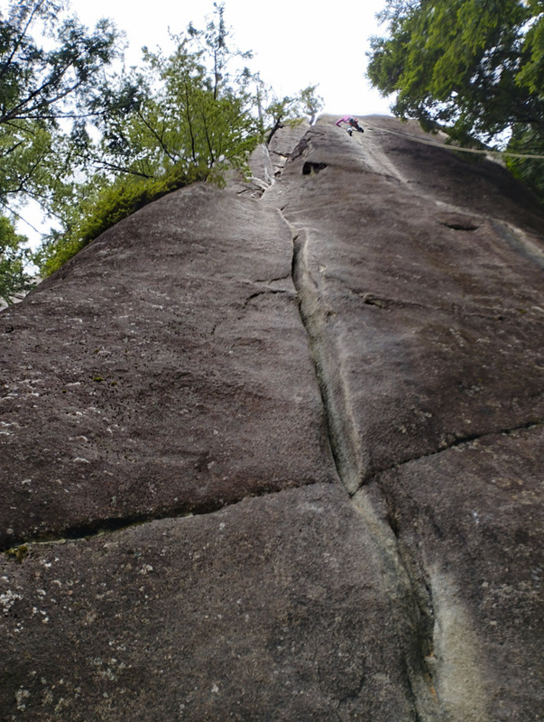 ボルト位置が高いので、TRで3トライ。 ガバから左へ出てクラックを登るか、右カチを取りに行くか。...