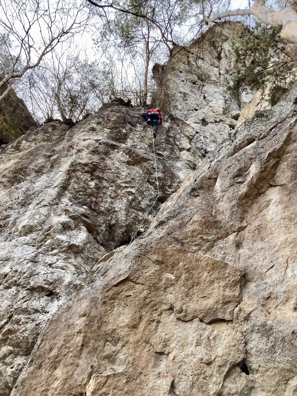 下部は階段状のアプローチ。だいぶ高度を上げてボルト1本目にクリップしてから実質スタート。ポジティブ...