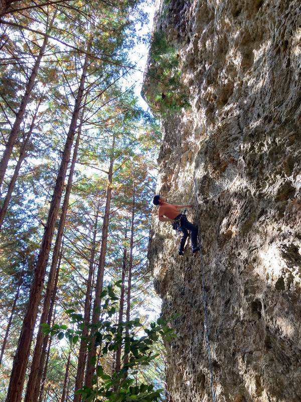 猫も杓子も (5.12c) 鳳来 / 鬼岩周辺 / 河原の広場、ウォームアップエリア