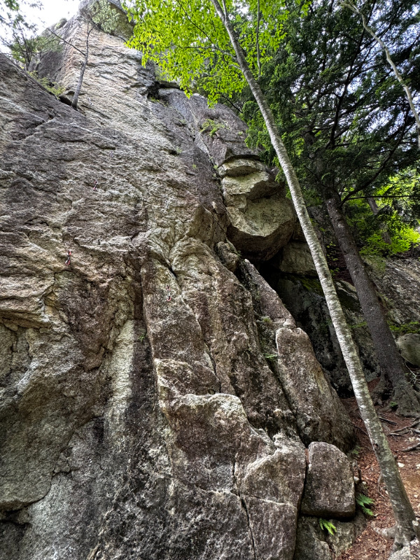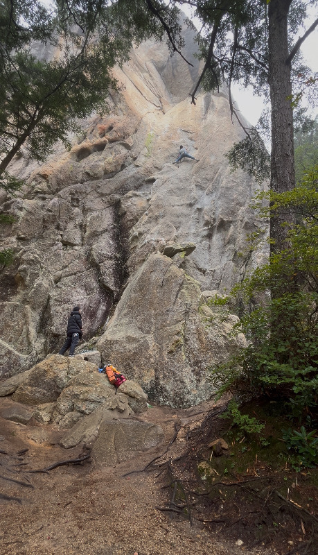 凹角を登ります。意外と難しいです。リードが登るとビレイ点にパラパラ小石が落ちてきます。