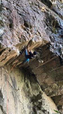 ハング越えは少々遠いガバホールドでダイナミックに登れて楽しいですが、核心は最上部。右側のカンテを絡めるムーブは分からなかった...