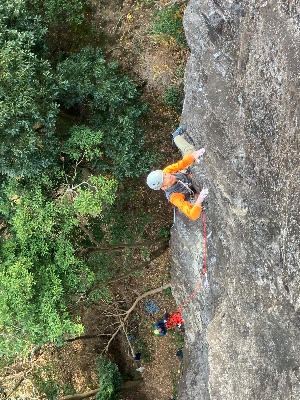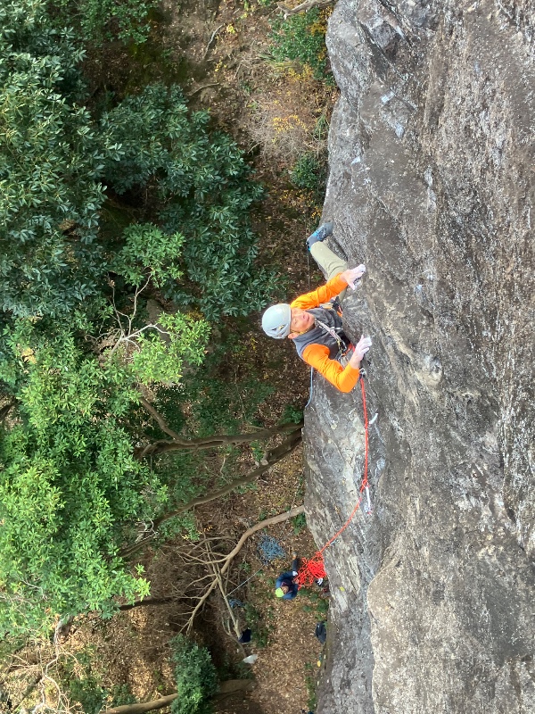 ルーファイ難しくハング下に進むと行き詰まります。正解コースを辿ってもそこそこムーブ強度あり体感5.10c〜dくらいに感じました。