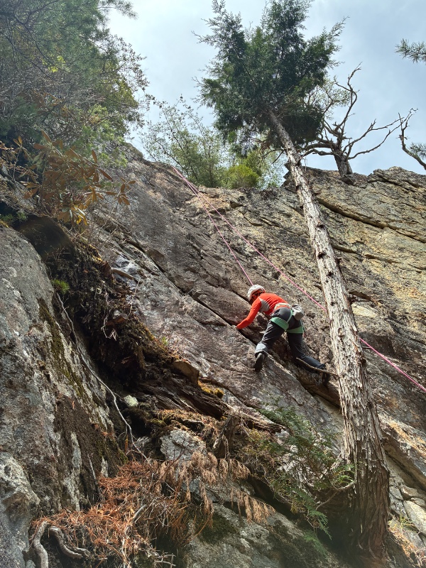 下部は気持ちの良いムーブがあり、上部は足を上げてぐいぐい行ける気持ちの良いルートです。