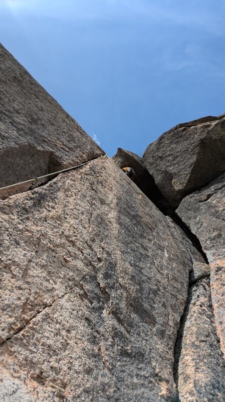 オフウィドゥスなクラックが目立ちますが、クラック内部にホールドもありジャミングは使わずにステミングを交えて登りました。テラス...