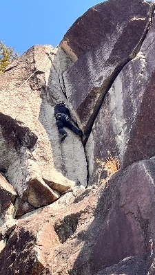 下部は穴とカチをつないで登っていく。個人的にすごく面白かった。なぜかあまり評価されていない。 上部はカチと小カバを使って小...