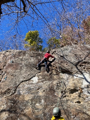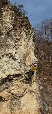 スラビーな前半、中間部の小ハング、後半のフェイスと変化に富んだルート。最後まで気が抜けません。面白かったです。