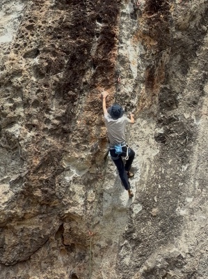 トンネルの内側からスタート。トラバースからのハング超え。最後のフェイスまで気が抜けません。ムーブがあり、面白いルートです。