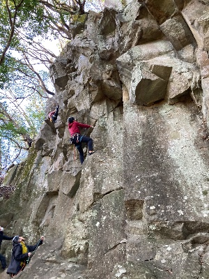 1pはアプローチの末端から右側の壁に出るアプローチ的ピッチ。2pはスラブから始まり徐々に傾斜がついてきます。安心できるガバホ...