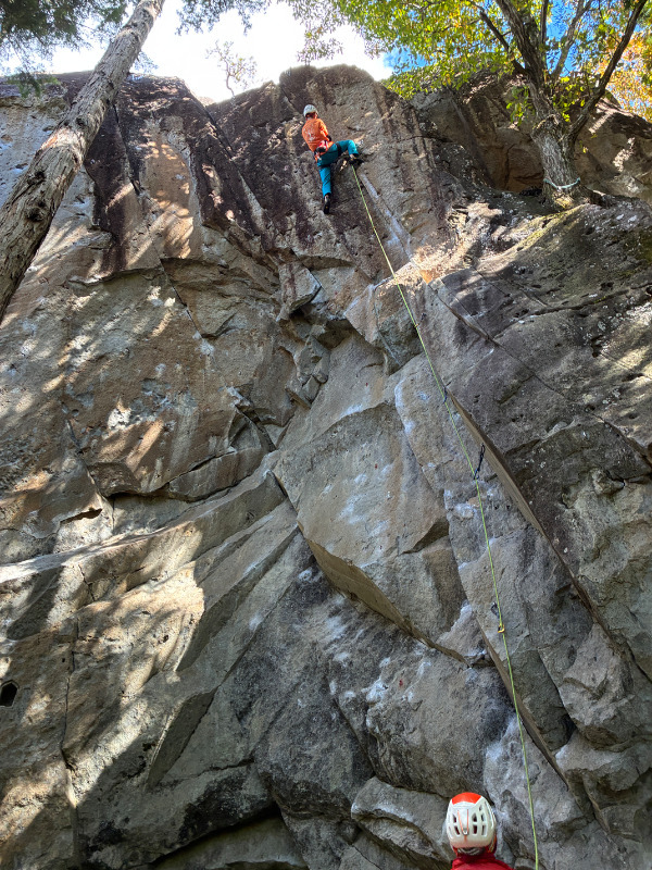 三ツ星ルートのイレブンと言うことで取り付いてみることに。初見だと3ピン目をクリップしてから右のカンテに移るのが分からないかも。核心は中間部から終了点の間。確かに登りやすくて楽しいルート。