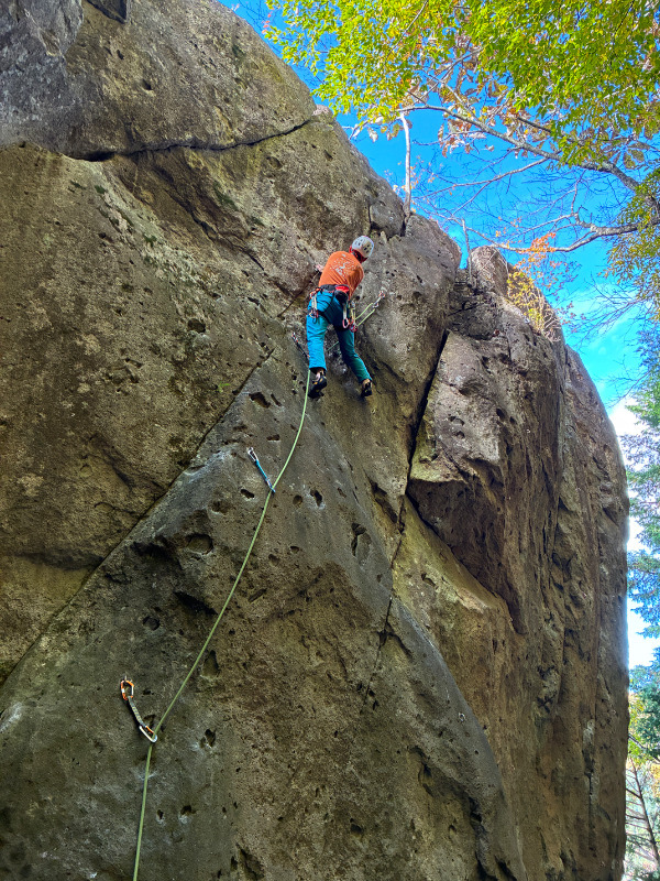 北面で陽が当たらないのでとても寒い。出だしから2ピン目くらいまでが難しい。気温が低いと大変。