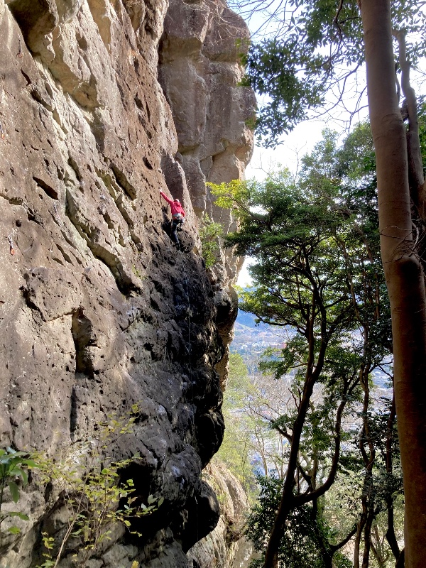 最初にハングを右側に抜けて、左にトラバース再度右上していき終了点へ。このエリアのアップロード向き。