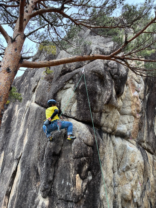 右側の大岩からスタート。下からだとプロテクションがプアなので怖いと思う。中間部がレイバック体勢でのカムセットになるので、だいぶ恐ろしい。オンサイトは要注意。