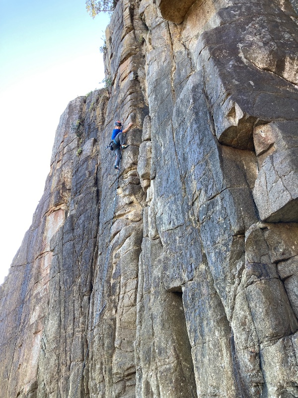 カンテ状をガバを繋いで登る楽しいルート。長さもありこの岩場のアップに良いです。