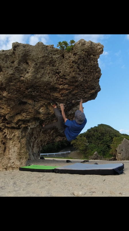 バイン岩の一番の張り出しをヒールフックを駆使して登る好課題。