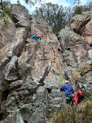 メインエリアの最左端にあるルート。100岩トポには掲載されていないですが、ボルトはしっかりしてそうなので取り付いてみることに。核心は上部。なかなか楽しい。