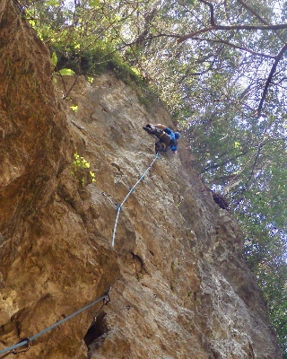 エリア左端のルート。少し傾斜あるスタートから、このエリアとしては凹凸少ないすっきりしたフェイス(ルート名の由来?)を登ります。