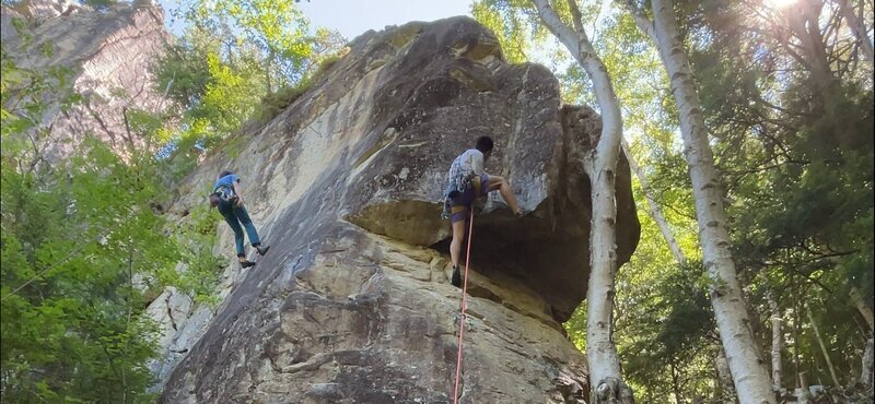 核心は2p~3p間だが、終了点クリップ体勢に入るとこもスタンスが極薄で怖い。 核心部右手のホール...