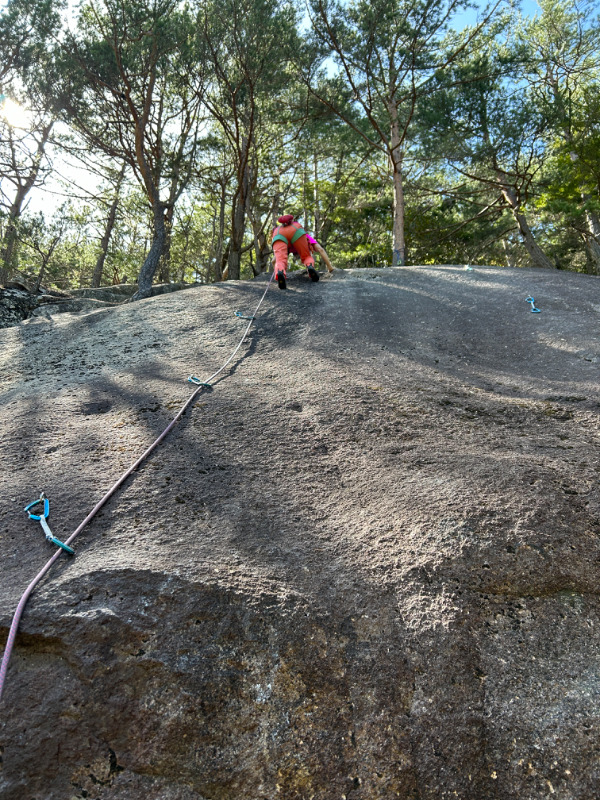 出だしのフェースがスタンスが乏しくて登りにくいがボルトに手が届くので安心。 なかなかいいスラブで...