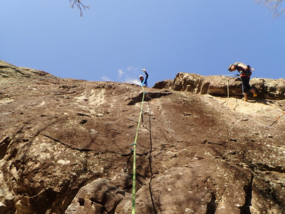 手ごわい10d。テーピングのほうが良さそう。 出だしのカム打ちがテラスから乗り出すので怖い、確保...