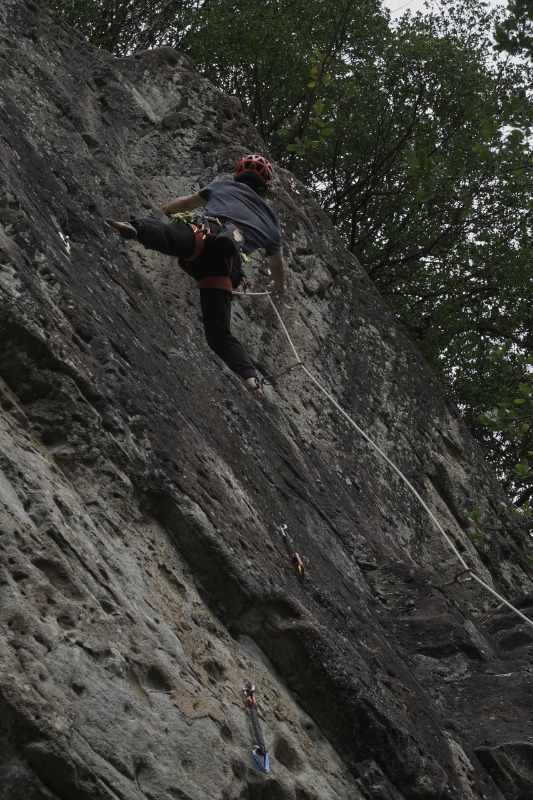 カサメリ沢のトータル・リコールと似たような課題。ガバカバの下部に中間部のレストポイント、上部の一手...