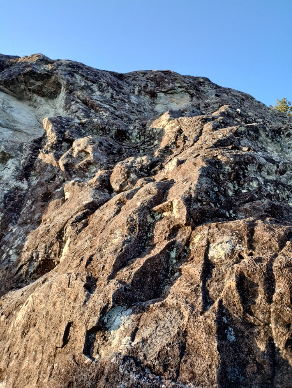 上部は右側からいくとだいぶ優しい。 左側のクラック沿いにいくのが正解ルートなのかもしれないが、薄...