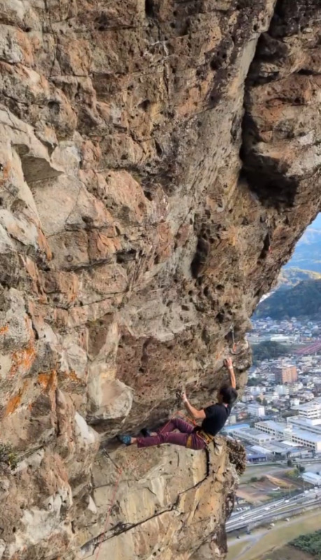 下部は大胆なムーブ。 上部も意外といやらしい。でも楽しいルートです。体感11b