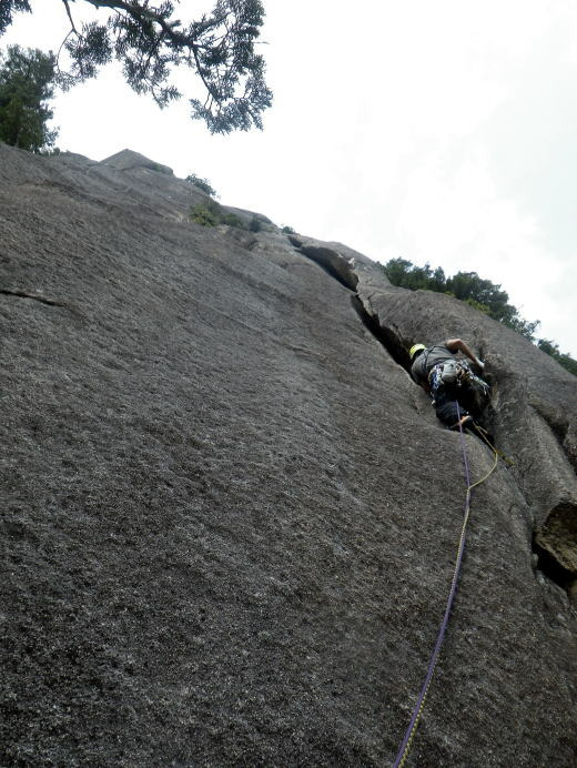 2Pはあみだくじを使う小川山トポ記載のルート。2/4Pをリード。登攀後は歩いて帰れる。4Pビレイ点...