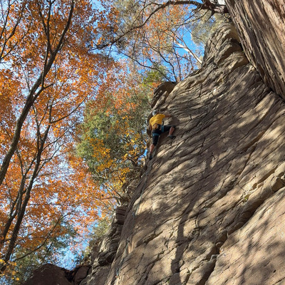 早い時間に陽が当たります。終了点の直下が土っぽかったです。ホールドが深いので、つま先や指が引っ掛かりがちでした。お隣と終了点...