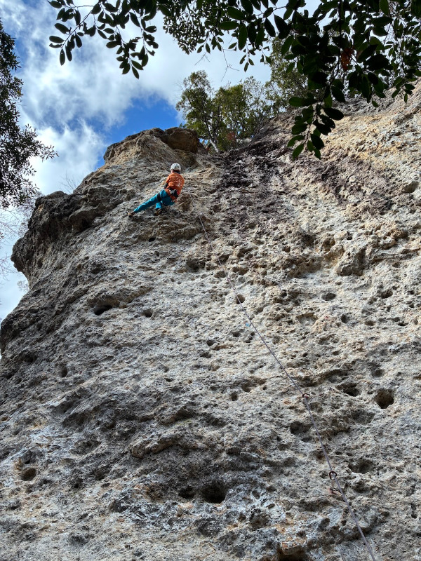核心はボルト2ピン目から3ピン目付近。バランシーで右から?左から?越えるかはクライマー次第。意外と楽しいルートです。 終了...