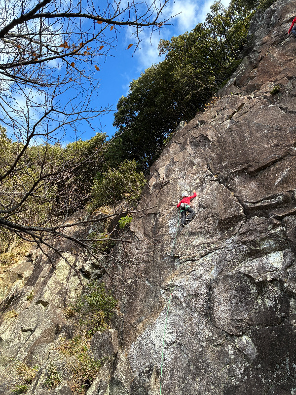 メインエリアの最左端にあるルート。100岩トポには掲載されていないですが、ボルトはしっかりしてそうなので取り付いてみることに...