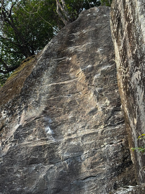 割礼塔右端の短いスラブルート。出だしはカンテ右のガバからスタートして、さらにその上のガバどり。3p目とってから右へ行くか左へ...