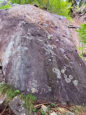 「つる」の左隣り。スラビーな課題が多い黒岩で、前傾壁が楽しめます。左の壁と「つる」が近いです。ジリ...