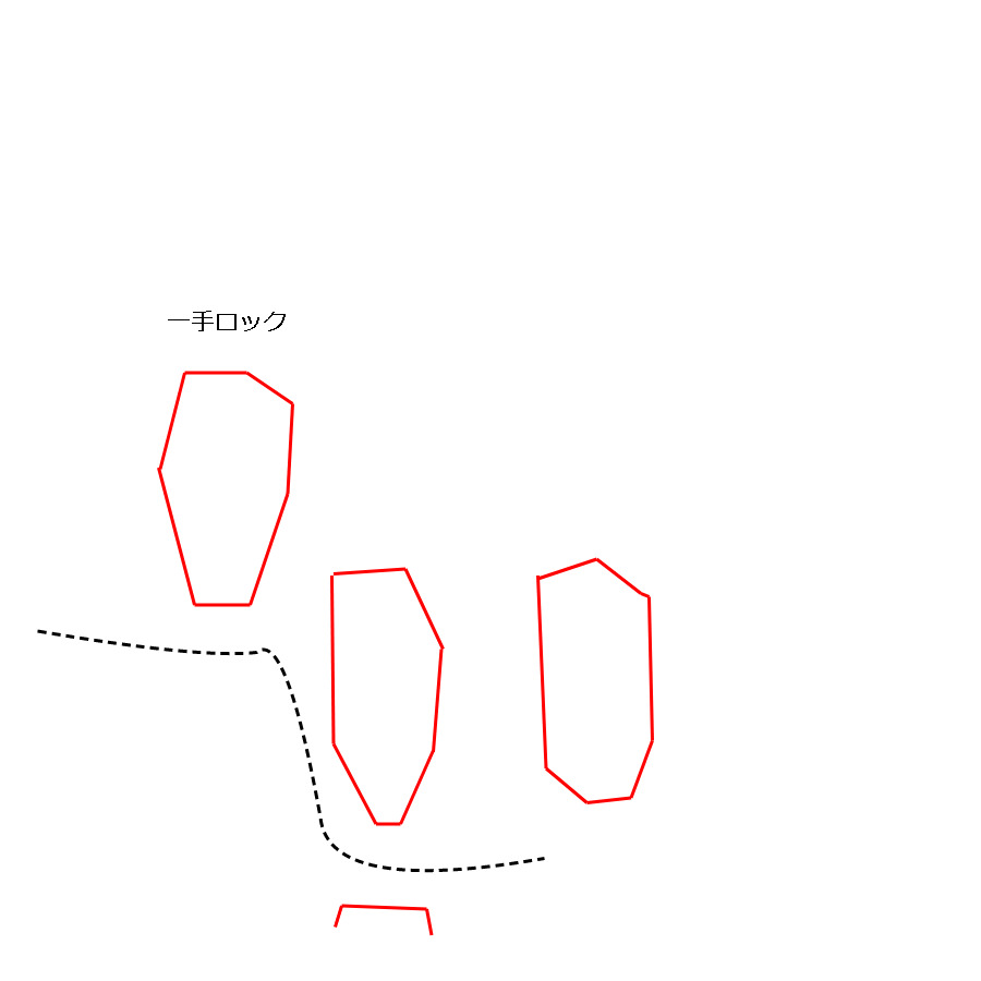 ボルダー(17ルート)赤ラインをタップでルート名、グレードを表示