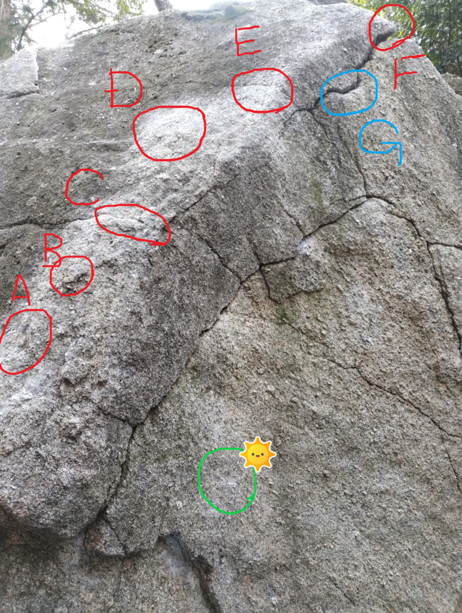 ボルダー(18ルート)赤ラインをタップでルート名、グレードを表示