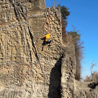 天の川の左隣のルート。天の川のように鉱脈状のホールドを登りますが、こちらは明らかにホールドが少ない...