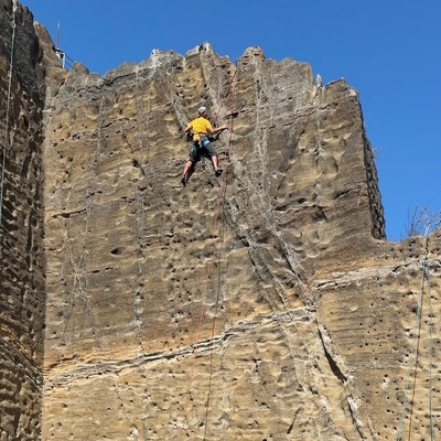 左上する、まるで天の川のような岩の硬い部分を登るルート。多くのホールドは時の経過と共に角が取れ、ダ...